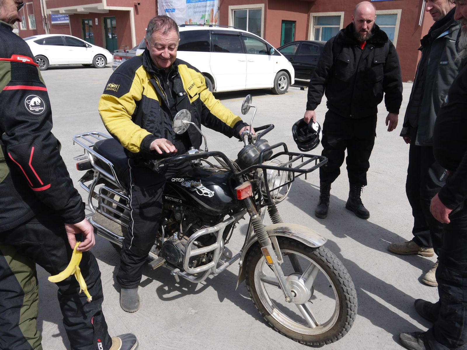 Notre pote avait été cherché une 125 chinoise mono 4 temps - ils ont tous cela là-bas, qui appartient au tarmac et dont ils se servent pour diverses choses, comme tout le monde ici. Les quelques bornes passées dans le panier ne l'ont pas convaincu... :shock: 8)
